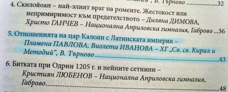 If you remember, I participated in a history convention in April 2010 where I won some prizes. Well today my history teacher told me that my materials were published, then he gave me the actual book. My first subject was "Relationships between tzar Kaloyan and the Latin empire" and the second one, where I had a collaboration with a schoolmate was "IV crusade and its influence on the politics on the Balkans."